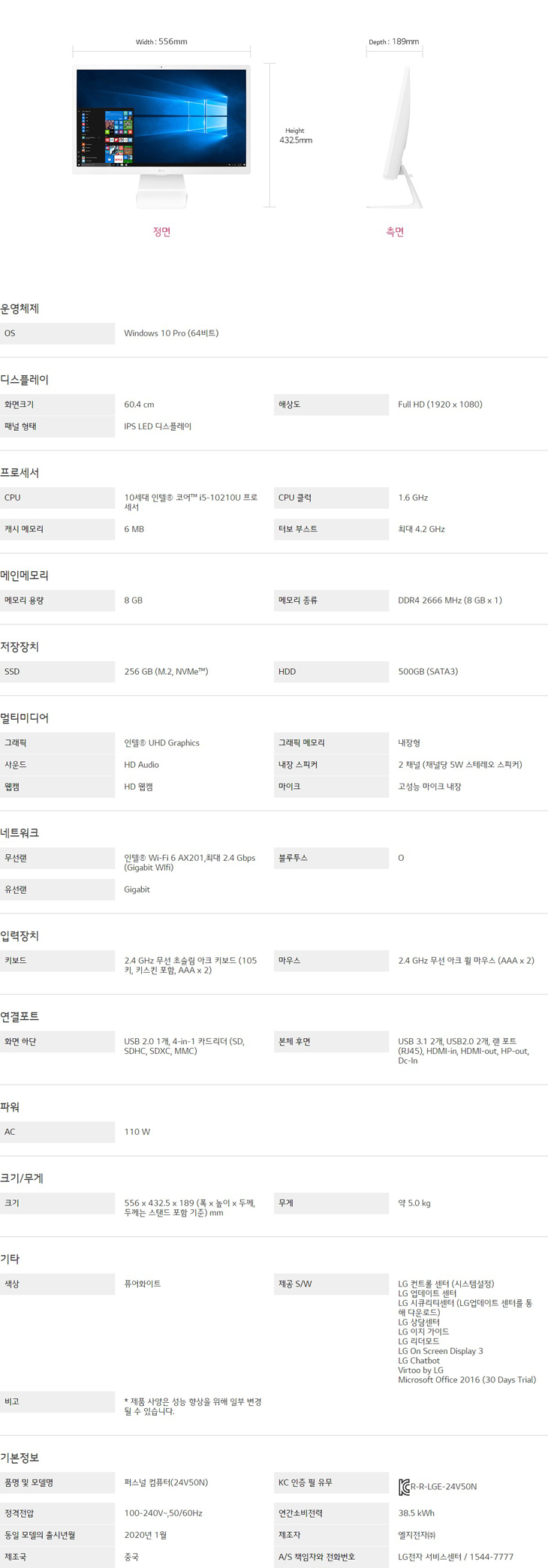 LG 일체형 PC 24V50N-GP5SL