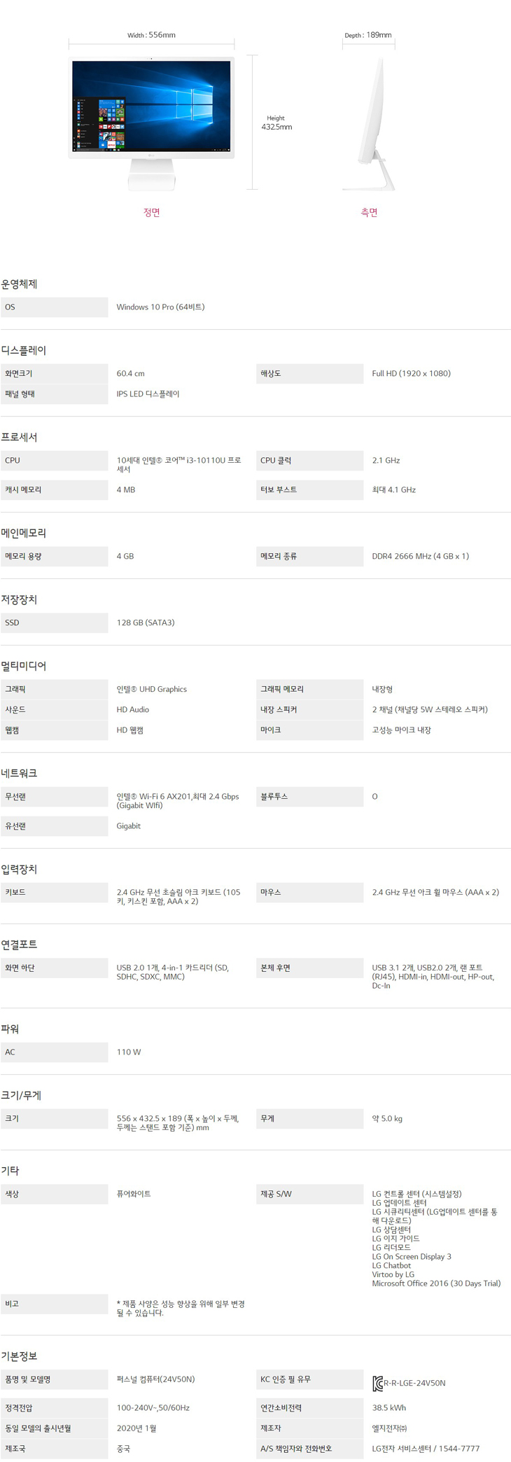 LG 일체형 PC 24V50N-GP30L
