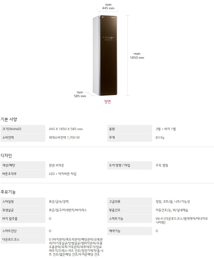 크기(WxHxD) : 445 X 1850 X 585 mm