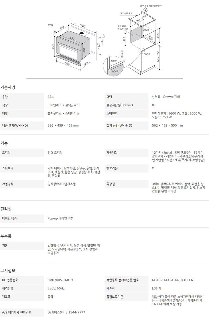 LG 스팀+오븐기능 광파오븐 MZ941CLC