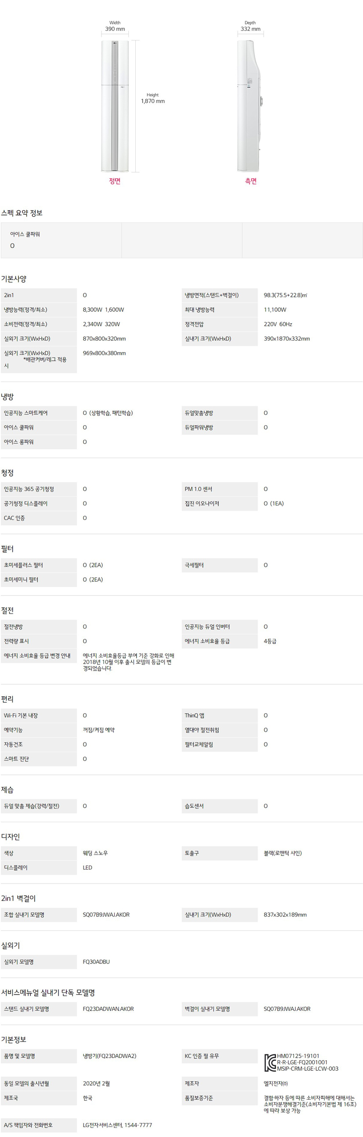 LG 휘센 듀얼 디럭스 FQ23DADWA2