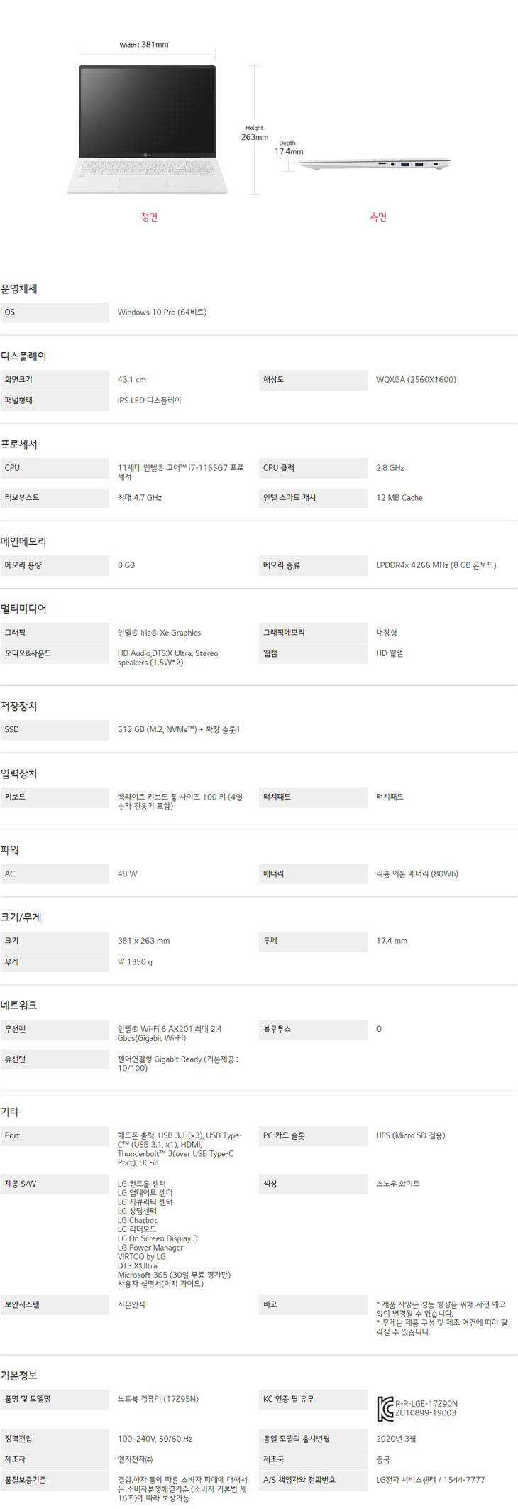 LG 그램 17 17Z95N-GP75ML