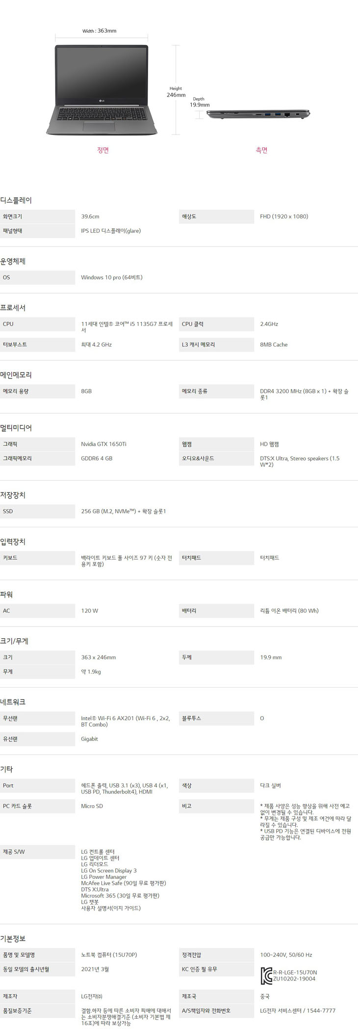 SSD : 256 GB (M.2, NVME) + 확장 슬롯1