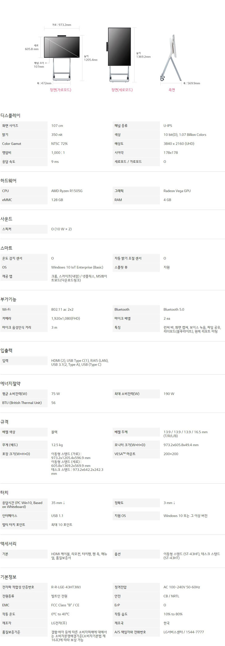 LG ONE:QUICK 43HT3WJ-B