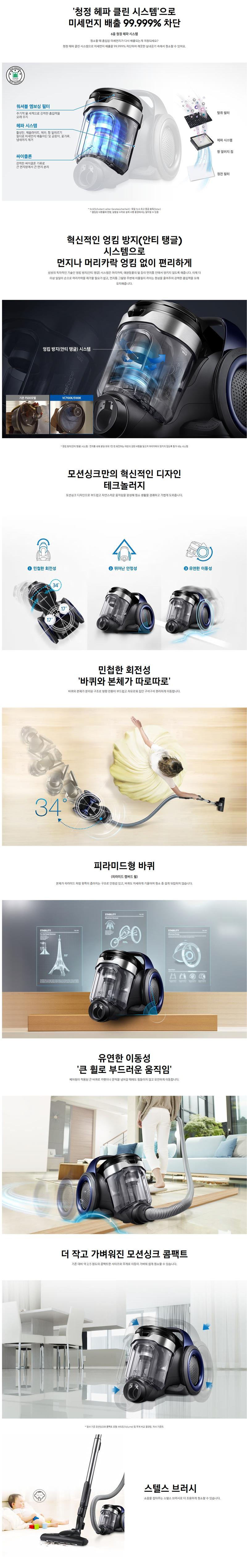 | 먼지통 | 집진 타입 | Bagless(안티 탱글 싸이클론) |