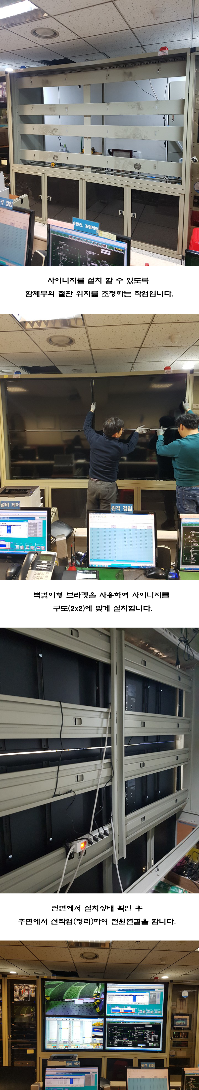 내 용 : 관제용 모니터 2x2교체 작업, 4대의PC입력소스를 각부에 연결 CCTV, 제어, 검침용 모니터링