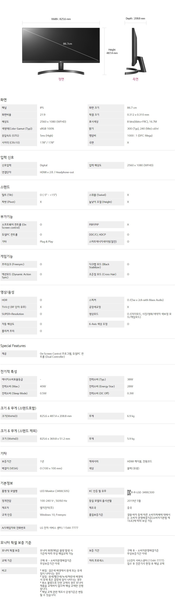 화면크기 : 34형