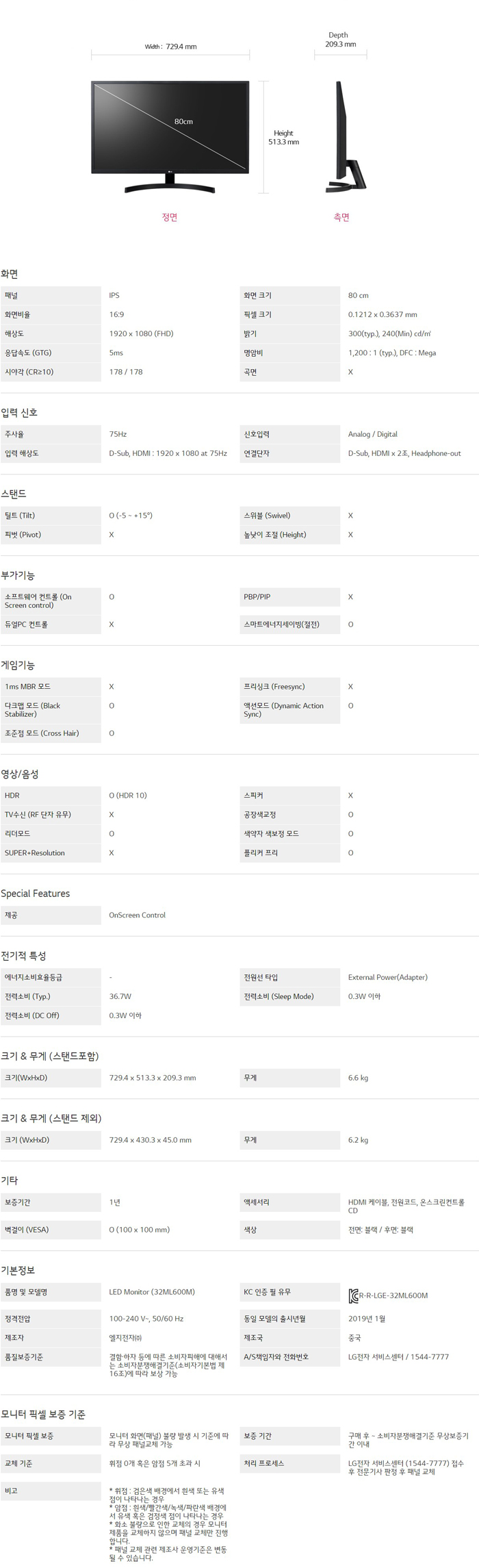 밝기 : 300 (Typ), 240 (Min) cd/㎡