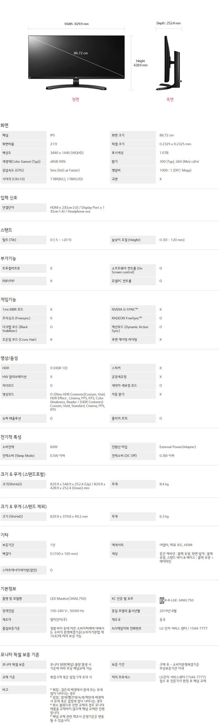 밝기 : 300 (Typ), 260 (Min) cd/㎡