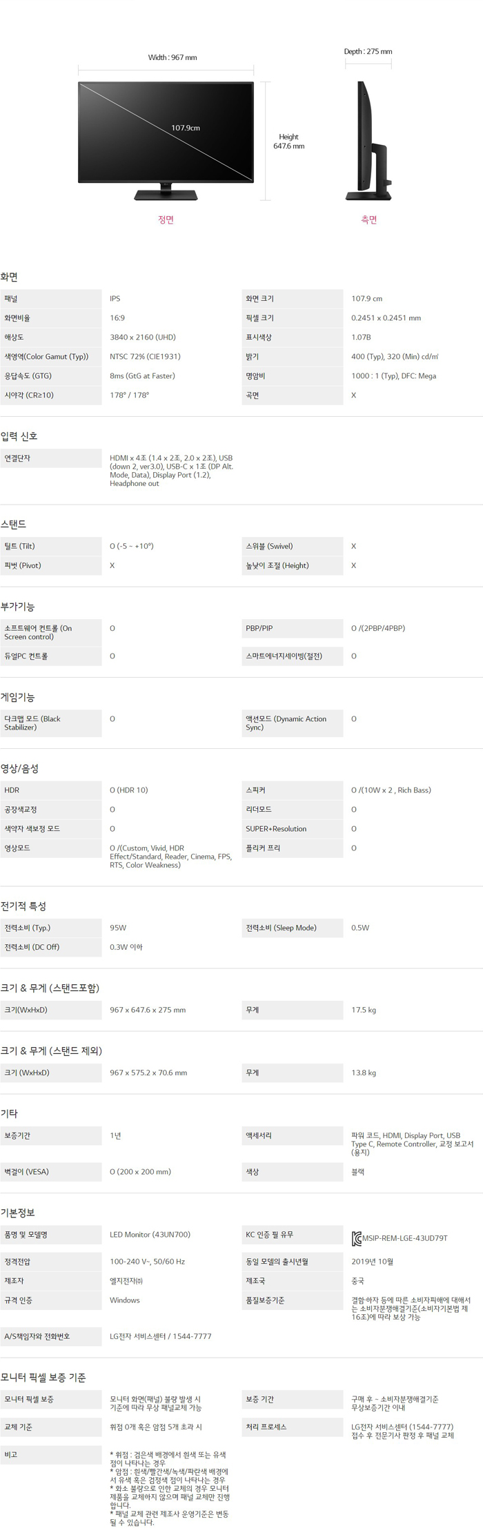 화면크기 : 43형