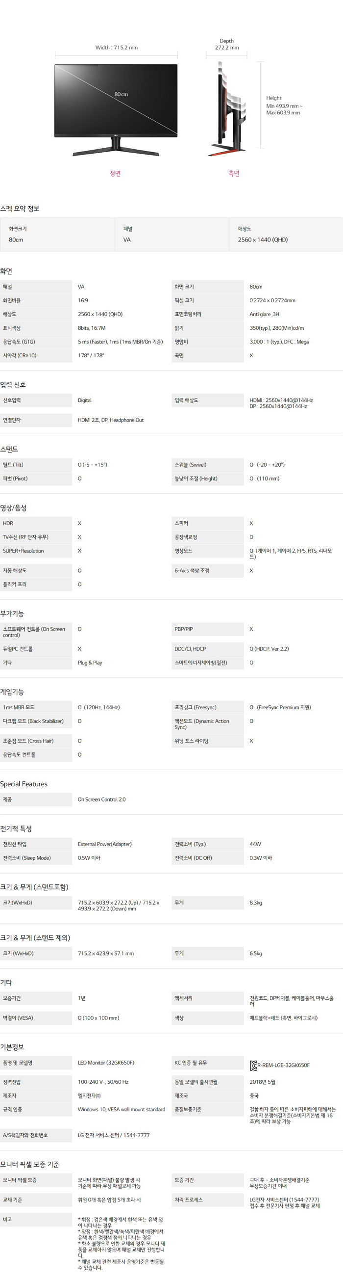 응답속도 (GTG) : 5ms, 1ms (모드 ON시)