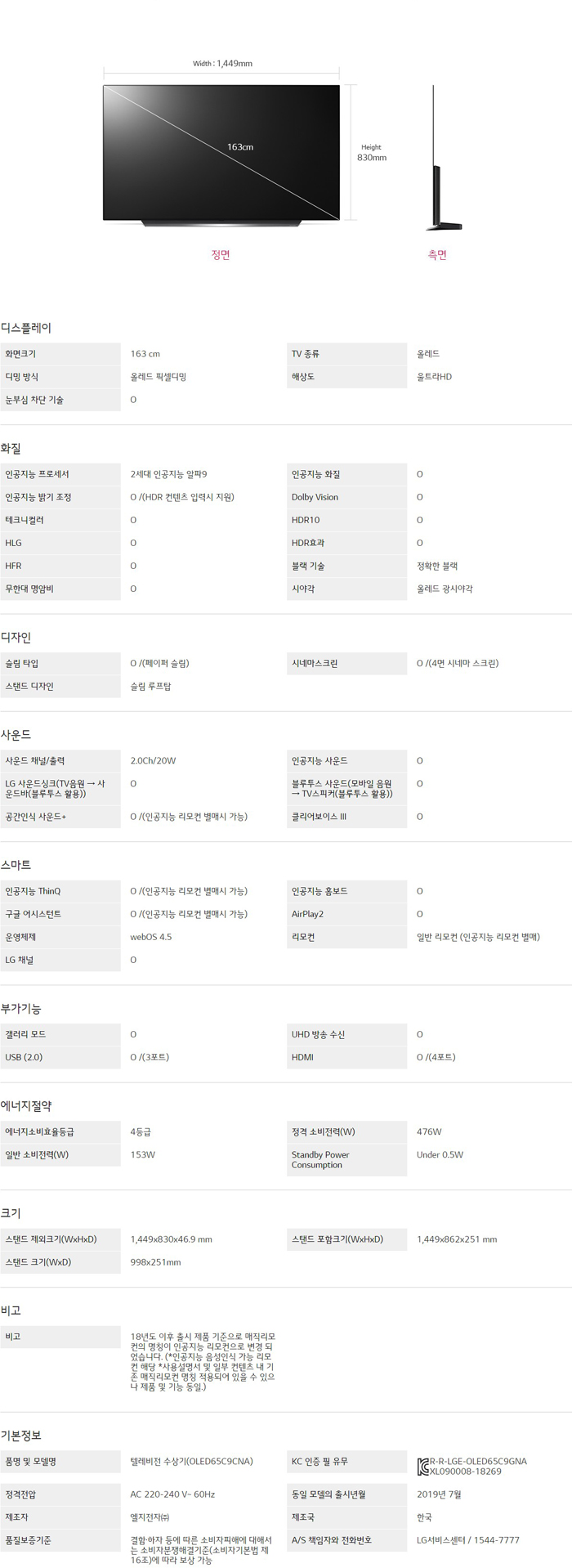 LG 올레드 AI ThinQ OLED65C9C